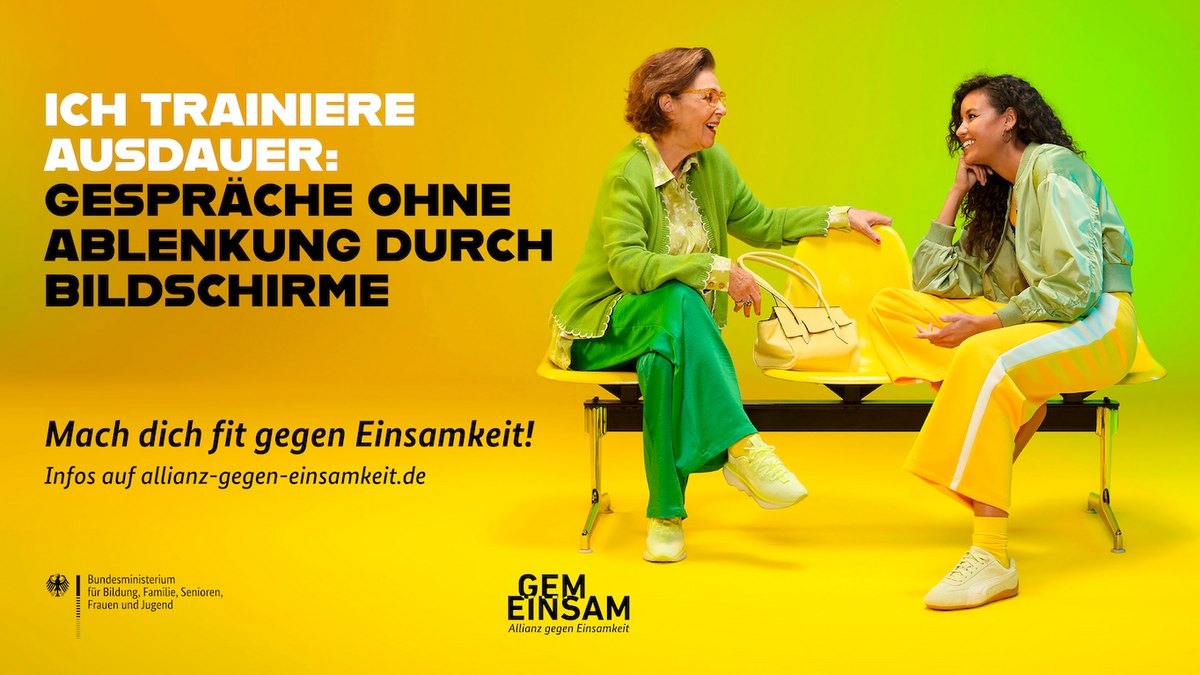 Die neue Kampagne „Mach dich fit gegen Einsamkeit!“ des Bundesministeriums für Bildung, Familie, Senioren, Frauen und Jugend ist gestartet. Im Netz und im Stadtbild macht sie darauf aufmerksam, wie verbreitet Einsamkeit ist – und wie wichtig es ist, dagegen aktiv zu werden. Die Kampagne sensibilisiert zum Thema und soll dazu beitragen, Gemeinschaft zu stärken – beginnend mit kleinen Gesten im Alltag.
