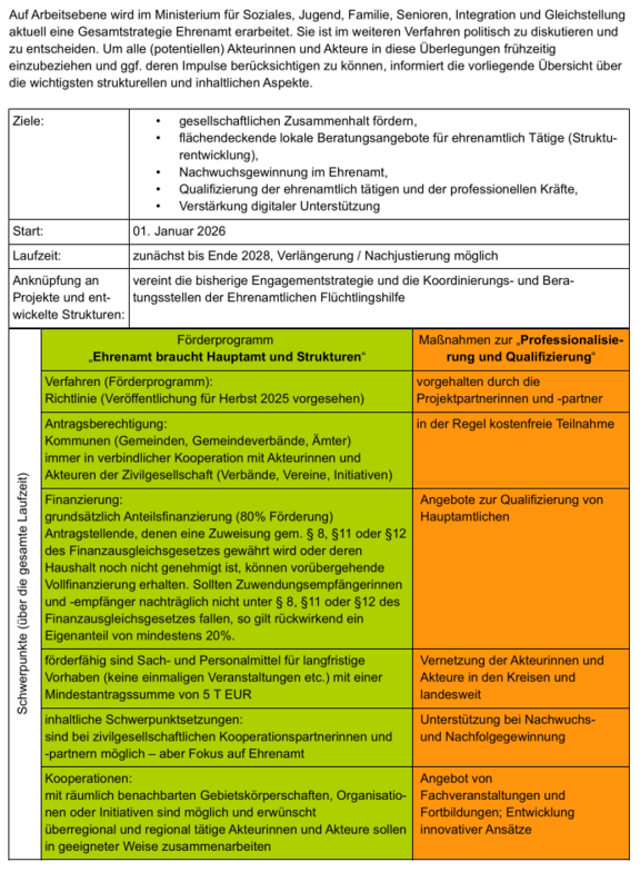 Planungsstand der Fortentwicklung der Engagementstrategie zur „Gesamtstrategie Ehrenamt“ 2026+